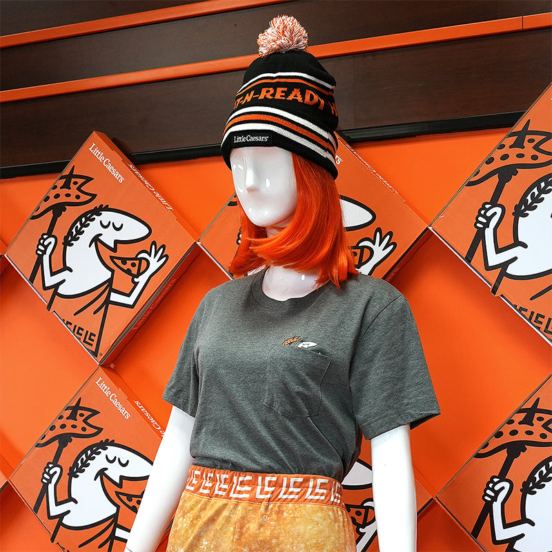 Thumbs up from Little Caesar! This secretive peek-a-boo tee has Little Caesar hiding behind the pocket, giving everyone you meet an enthusiastic thumbs up!